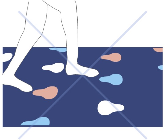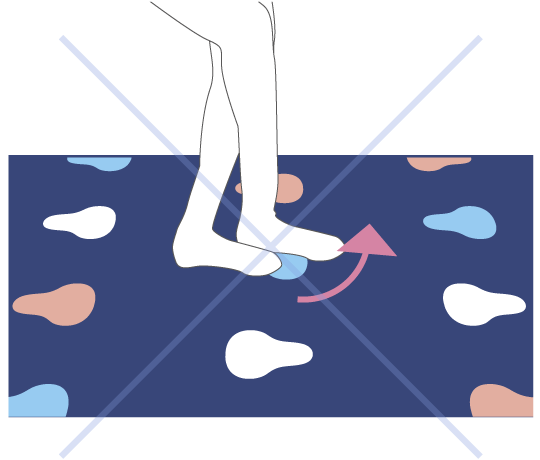 転倒の要因になりますので、無理な歩幅で歩かないで下さい。
