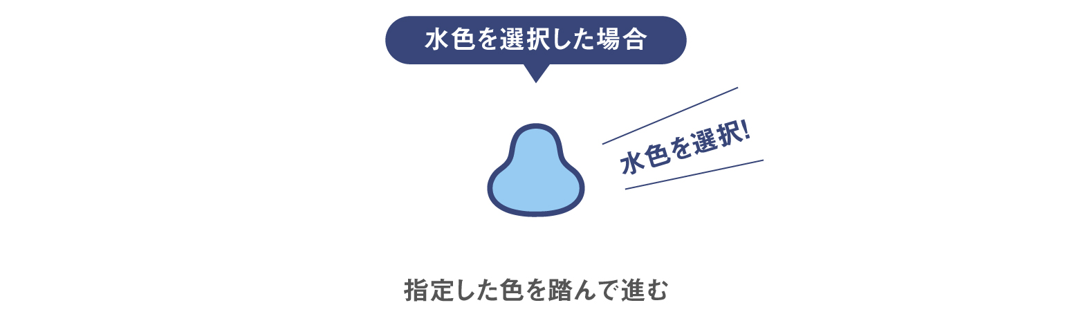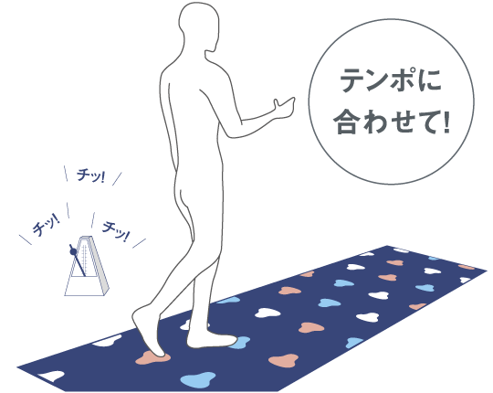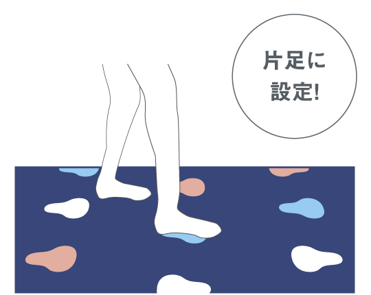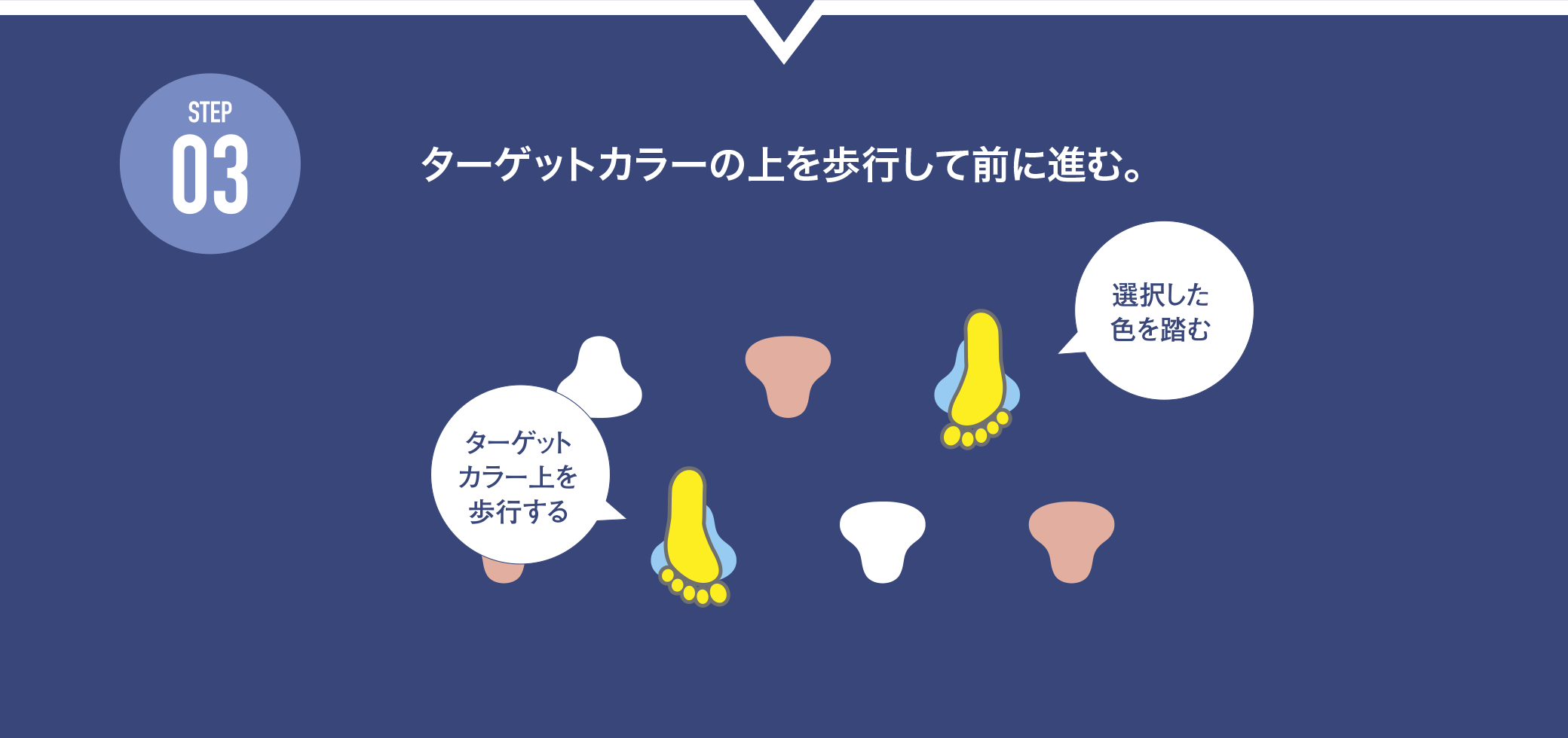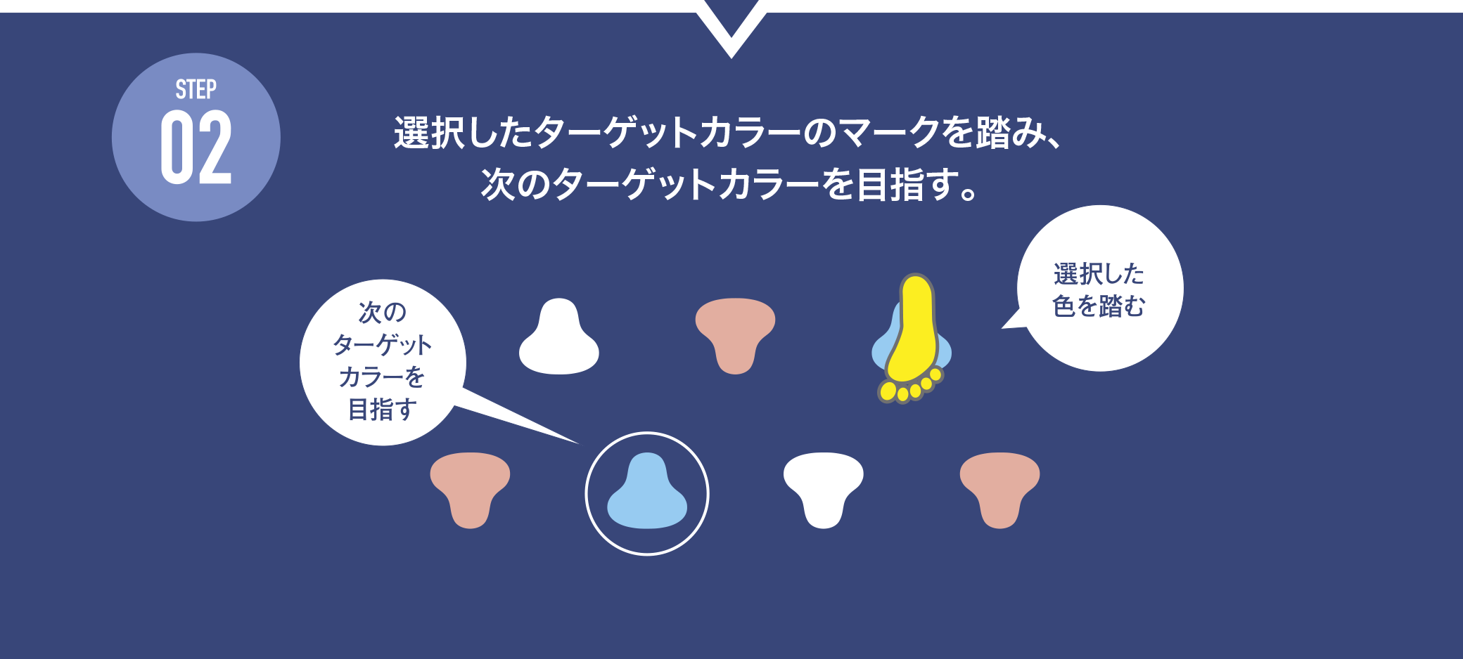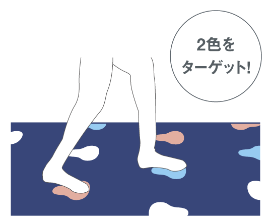 次のターゲットカラーのマークにとどかなかったり、足が交差してしまう場合は無理せずに紺色のベースを踏んで下さい。